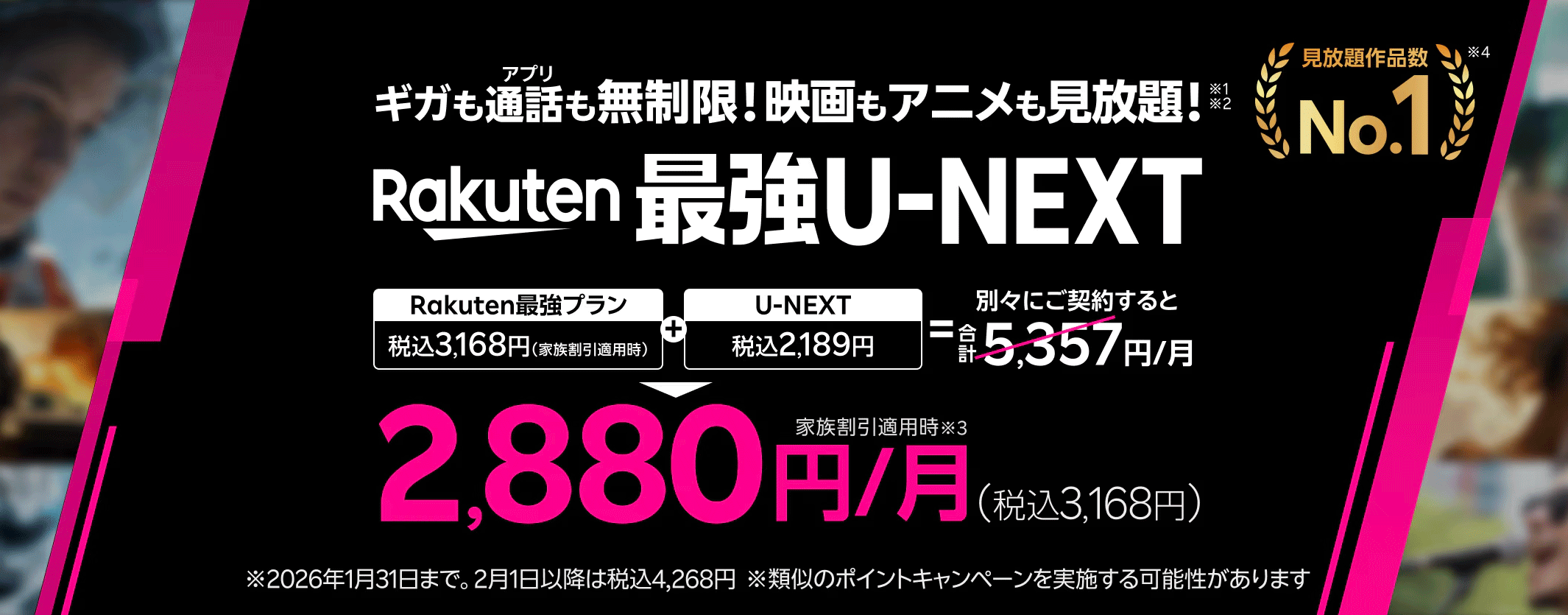 - 2025年9月1日(月)0:00以降に紹介された方(被紹介者様)の「Rakuten最強プラン」または「Rakuten最強U-NEXT」お申し込み分より、紹介ログインした月の4カ月後から3カ月間にわたる進呈です